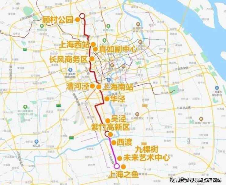 终点望园路站离奉贤著名风景区、上海第3大人工湖“上海之鱼”直线距离1公里都不到,此处还能与5号线、在建南枫线实现交汇换乘,是未来的上海南部大型枢纽。