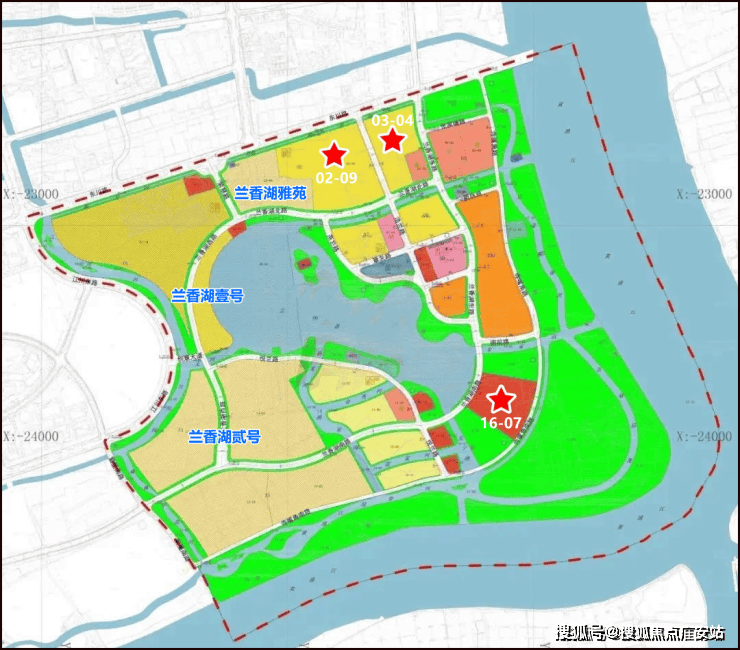 本次的住宅地块,可向西南眺望兰香湖湖景,环境优美,酒店地块则临江拥湖,三面绿地环绕,景色宜人。
