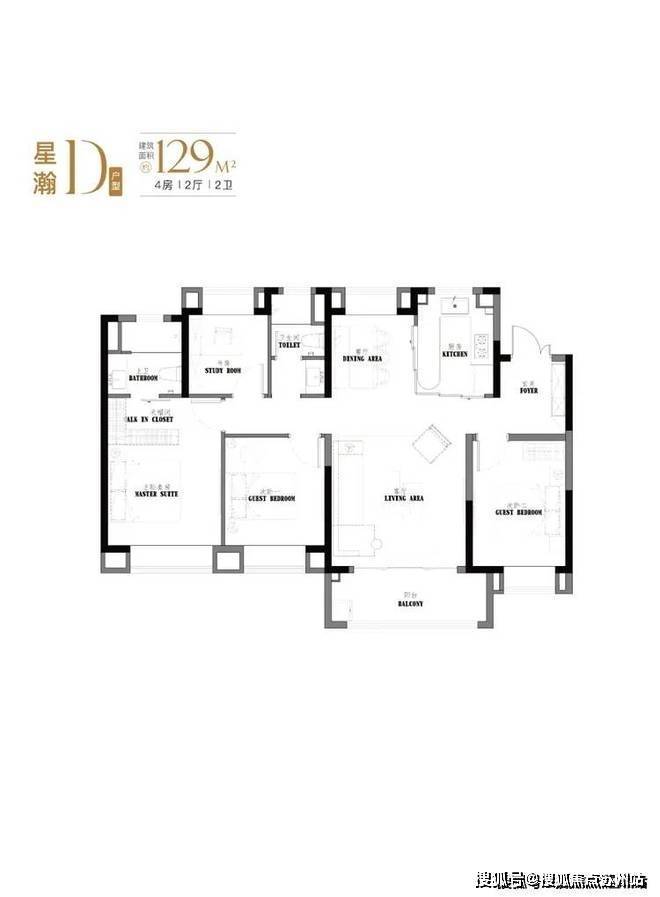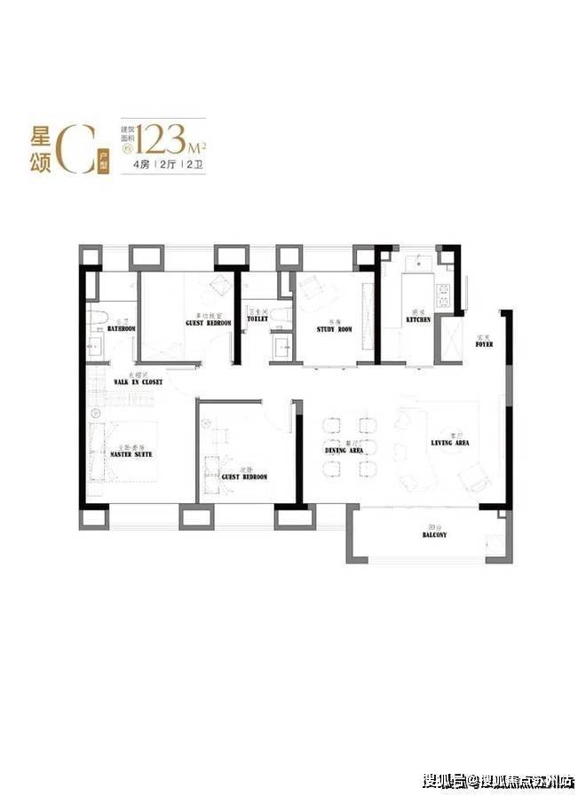 建面约123-129㎡真四房,这个户型的南向面宽和尺度感堪比一般的别墅。