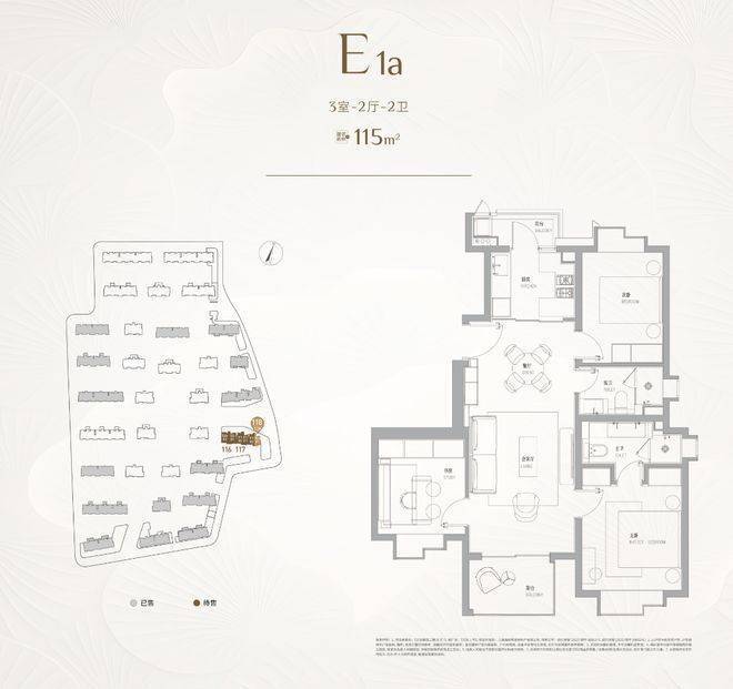 建面约115㎡的3房,三开间朝南的设计,户型的整体尺度感更大,餐厅甚至可以放下一张小圆桌。并且3房的实用性可以满足一个家庭的全生命周期需求。