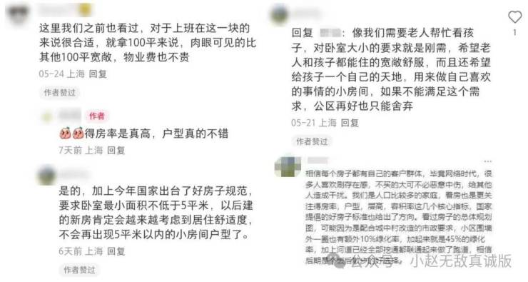 另外在社交媒体上,众多业主纷纷为项目低容积率、户型得房率、景观河道等点赞。