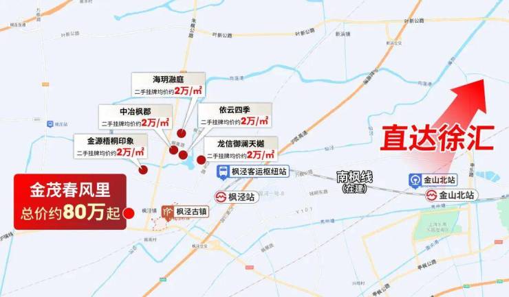 不过凭借一步上海的地理位置,项目通勤上海市区非常方便,公共交通方面,可以在枫泾客运站坐公交车,可以在南枫线枫泾站坐地铁(在建中),也可以在金山北站坐高铁直达徐汇。