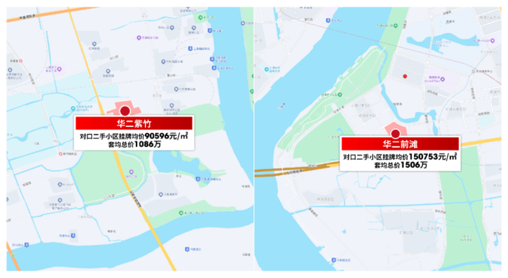 华二前滩的对口小区目前的挂牌均价超过15万/㎡,套均总价1500万朝上!