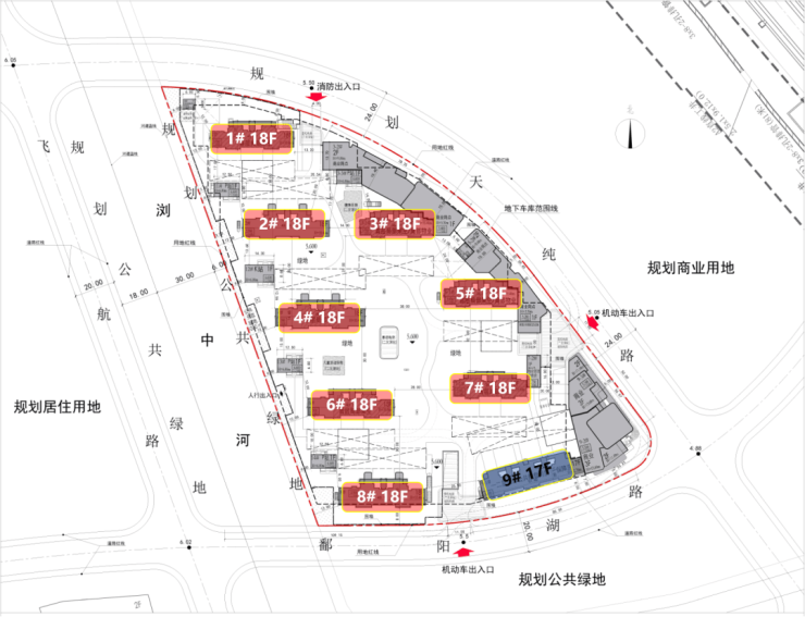 普通商品房用地,用地面积约39769㎡,容积率2.2,限高60米;据规划显示,规划12栋可售住宅,总高17-18层,总户数约901套,容积率2.2,非人车分流,车位比约1:1.2。