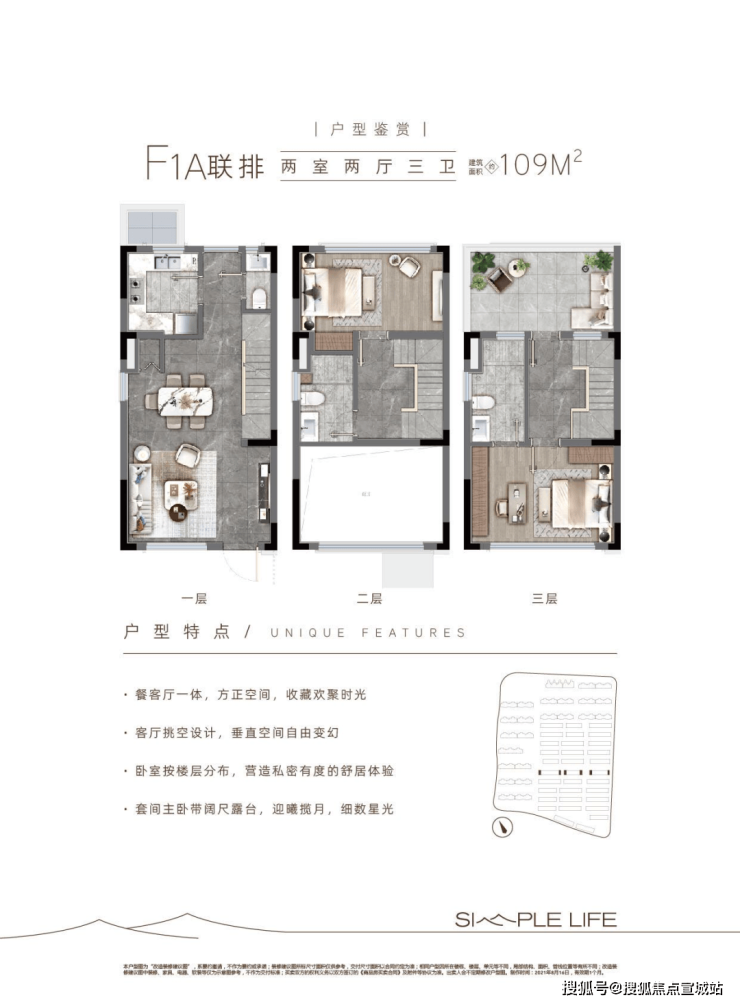 物业费:洋房4.9元/平/月、联排6.3元/平/月