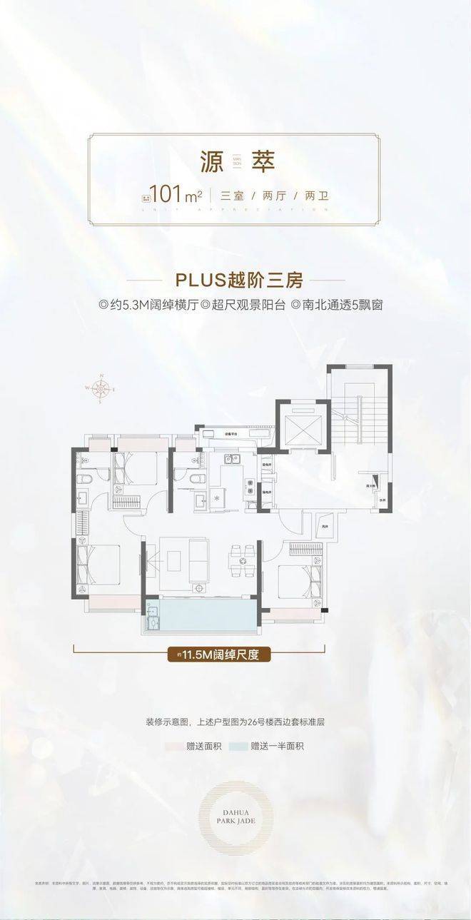 101㎡越阶三房:约5.3M阔尺横厅/约11.5M南向面宽,宽纳聚会欢愉