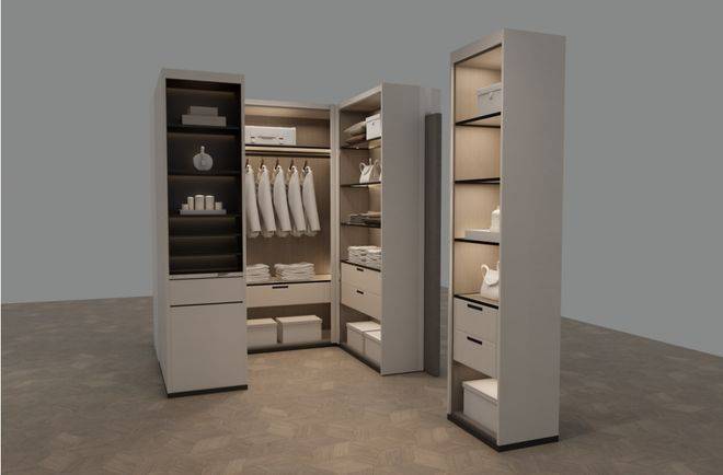 打开柜门,内外都是皮革包裹,质感进一步提升:
