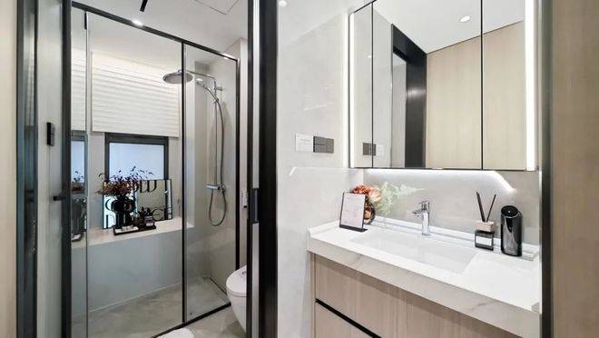 一般而言,主卫和次卫能拥有窗户达到全明采光已经称得上优秀了,而这套户型的两个卫生间均都有飘窗,丰富更多收纳可能性。
