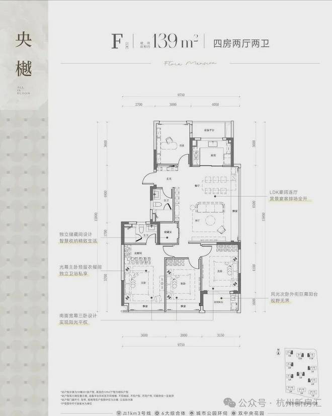 建面约139㎡的四房两厅两卫户型,则以它的南向三卧室:双飘窗+封闭阳台设计脱颖而出。整体南北通透设计,加上主卧衣帽间的贴心设置,为家庭生活提供了更多的空间选择和功能性需求。