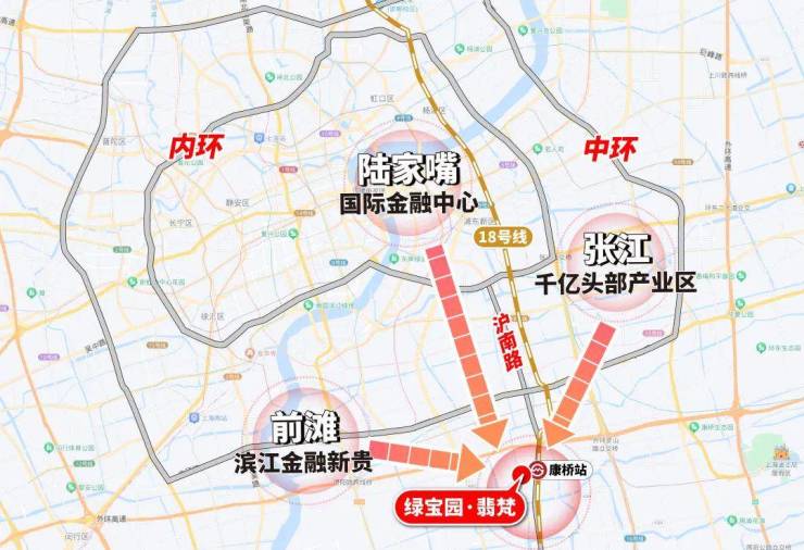 凭借区域内的中环线、S20 、11号线、18号线等道路交通设施,康桥和陆家嘴、北外滩、前滩、张江科学城等城市重大CBD连成一条黄金轴线