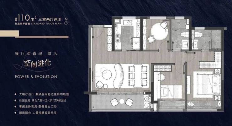 建筑面积约102-143㎡进阶户型带来全生命周期的舒居空间,全横厅设计诠释大尺度场景,阔境阳台、主卧套房设计,配备有独立卫生间和衣帽间,满足面面俱到的理想人居。