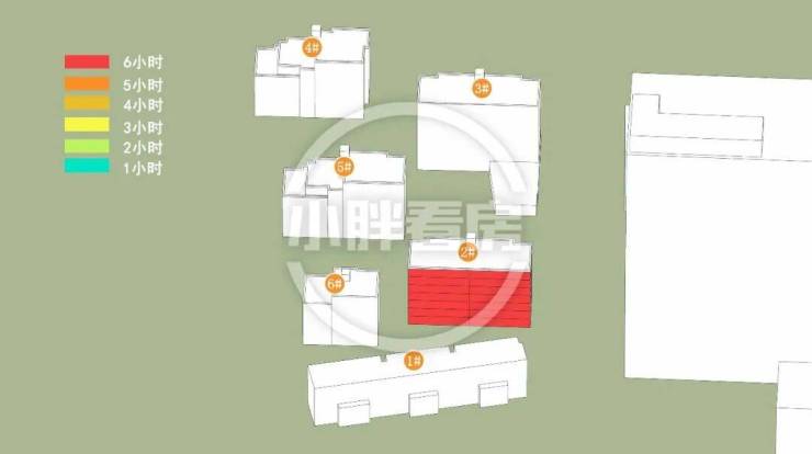 夏季:楼栋朝向正南采光优异。2##低层受遮挡。就具体遮挡时间而言,2#主要在上午受东部商业遮挡。
