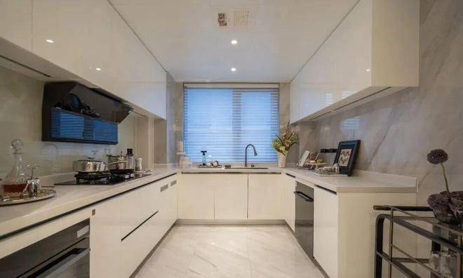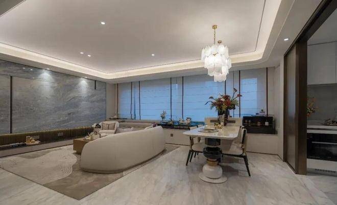 还有各种高级材料的运用,如维多利亚白石材、白玫瑰石材、地面拼花石材、土耳其雪花白石材、宝格丽黑石材、绿野仙踪岩板、贝母漆、皮革硬包等。