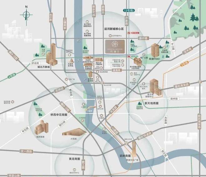 位置:拱墅区康桥路与顾扬路交叉口,属运河新城北段但靠近中段,双地铁环绕(4号线平安桥站约1公里,15号线康桥站约700米)。
