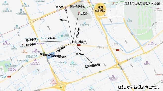 虹桥融景售楼处营销中心:400-8118-224☎☎✅✅紧邻国家会展中心,距离2号线徐泾东站约1.7km,距离17号线诸光路站约2km,处在徐泾比较核心的位置。项目步行范围内公交车线路不多,但附近的徐泾5路可以直达徐泾东。南侧有沪青平公路,东接延安路高架,前往市区也比较方便。