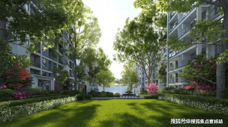 社区规划有四重生态境界,打造“四季有景,三季有花”的植物氛围.
