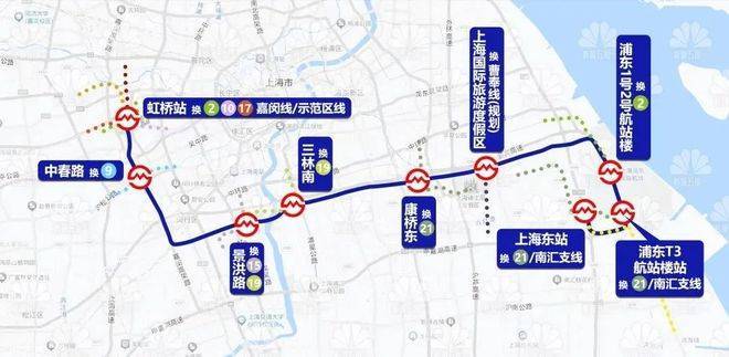 21号线还将在项目周边的康桥东站与机场联络线(已开通运营)实现交汇换乘。