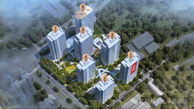 点状布置了7栋【水晶天幕】楼宇,