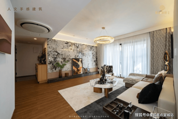 采用五重景观层层叠进,真石假山造景,承延墅区臻贵肌理的雅趣园林,引入自然河流,打造三面环水的滨水谧境,无界相融生态绿境,将社区、建筑、河流串联的相映成趣,自然围合,移步景异,营造极具魅力的惬意日常。
