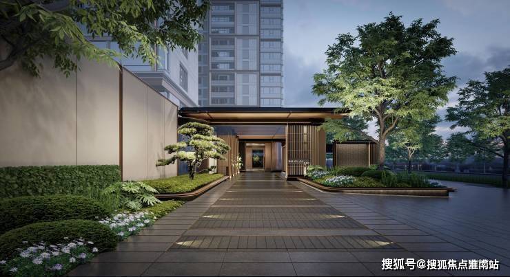 建筑风格:现代东方风格外立面,搭配江南园林景观示范区
