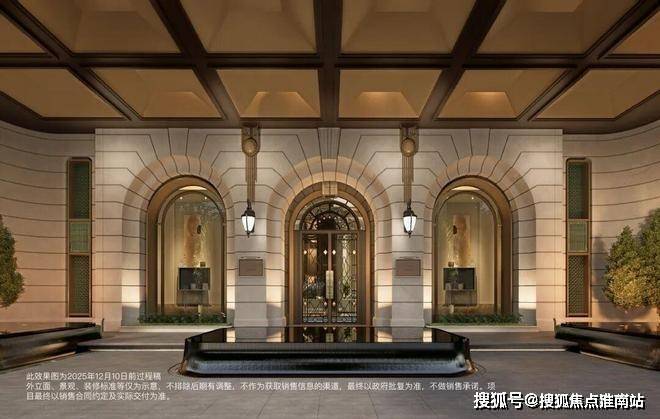 保利外滩曜售楼处电话:400-8818-994(官方售楼处电话) 社区主入口复刻华尔道夫酒店仪式,严谨的柱廊序列在米色石材上投下充满韵律的光影,穹顶与拱券,瞬间将归家情绪升华至艺术层面。