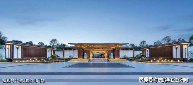 比如这一次的“建发式”大门一如既往,南北地块做了双大门设计,门头宽度达到约61米(含景墙)。入户做足了仪式感:重檐悬山式门楼、芝麻黑石材地雕、“鱼跃龙门”御道,两侧伫立着石狮、影壁、跌水、绿岛......还有两株精挑细选寓意“财富与健康”的罗汉松。