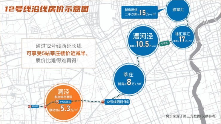 同样直达漕河泾、徐汇,总价相差近100万,这样的区别在于史诗级12号线延长线,改变9号线“独铁难支”的局面