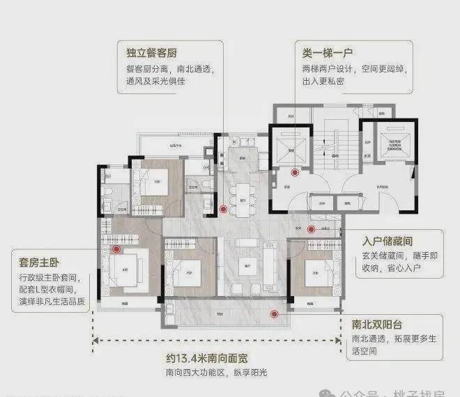 拥四大核心优势:稀缺类1T1户设计,私密入户体验;独立储藏间,收纳有序;约13.4米南向大面宽,明阔日常;LDKB设计,场景联通,多变生活。更有亮点设计——灵动X空间,定制不同家庭的改善所需;公卫干湿分离、主卧L型衣帽间呵护生活细节。