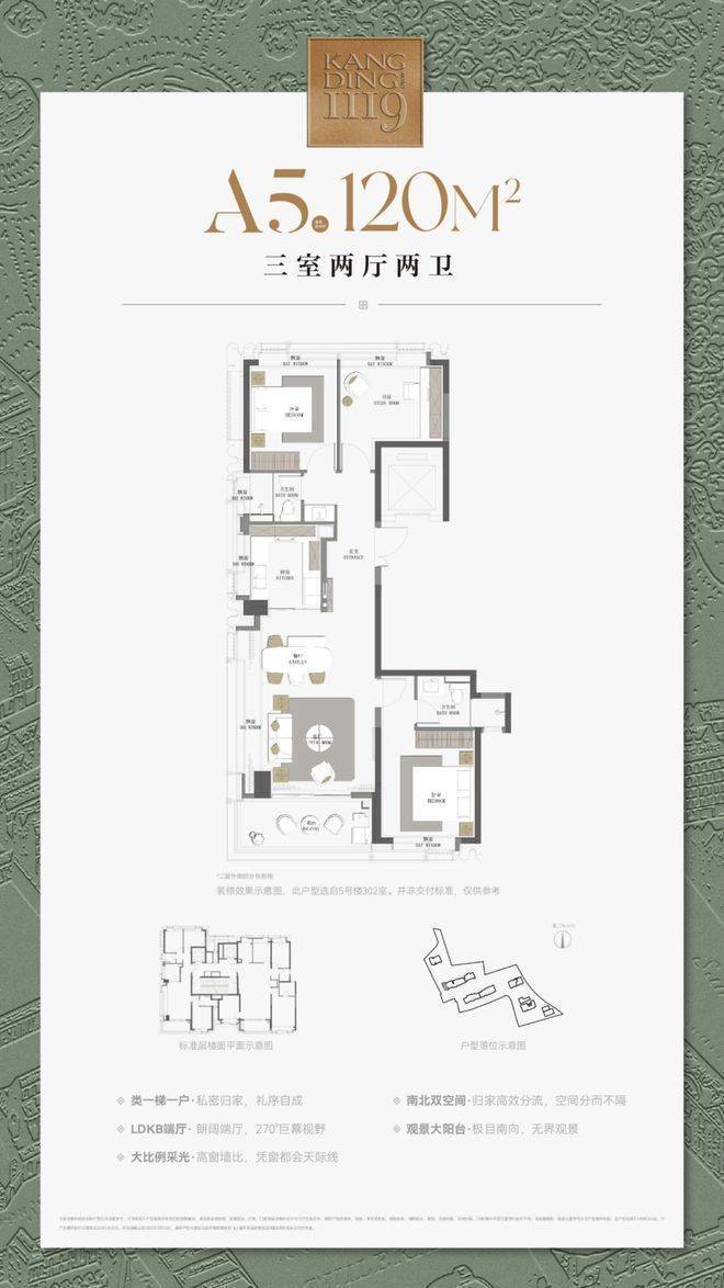 建面约120㎡3房2厅2卫▼