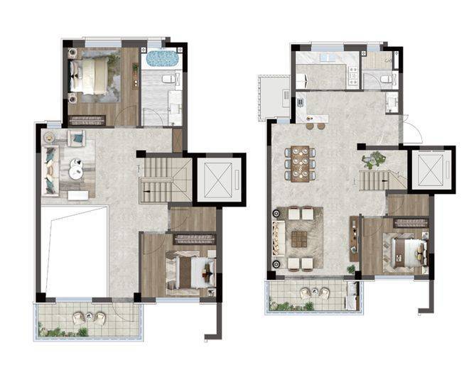建面约150㎡上叠户型: