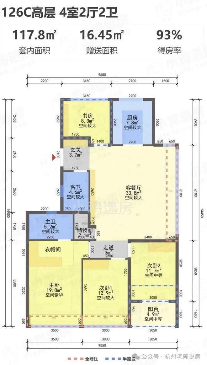阳台仅算一半建筑面积,实际得房率极高!