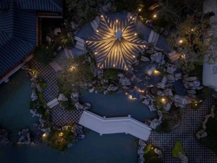 当大多数项目仍在描摹中式形制时,桃源里已实现更深层的文化觉醒与传承,这里的一石一木,皆是匠人用时间与自然对话的结晶;每一处框景,都在重构现代人与天地的关系。