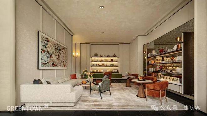 配套上,每幢住宅楼下都做了主题泛会所,未来仅供小区内业主使用,其中已经实景呈现的就有一个茶叙空间,还有个超级出圈的图书馆。