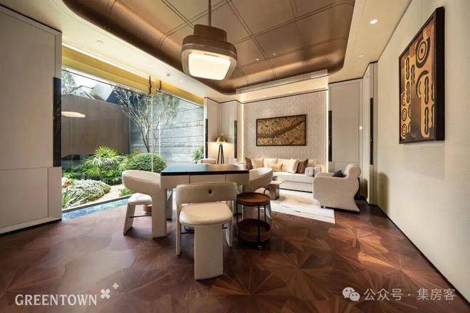 “PrivéTable瑰飨”私宴厅,会客用餐区相融,落地窗揽庭院绿意;“Obsidian Club围弈”棋牌室设智能麻将桌与休憩沙发,更有“Vigor Hub 律动”“Thermal Swim游弋”等会客厅配全景落地窗,让生活与自然互动。