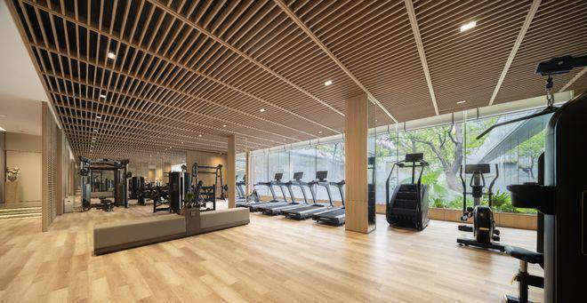 总计约1300m²的殿堂级会所。恒温泳池、健身房、影音室等生活场域,早已超越功能本身。恒温泳池旁,背景墙由于昭大师创造,深邃的艺术氛围,带来度假般的松弛体验。健身房的落地窗外即是园林景致,运动时亦能与自然艺术相拥。此刻,会所已不再是单纯的社交空间,而是艺术生活的沉浸式剧场。