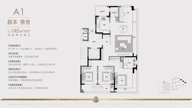华润沄璟文华轩售楼处电话☎:400-8558-224✔✔✔【预约☎】建面约145㎡的户型:项目采用创新的"两梯两户"设计,通过巧妙的空间规划实现类一梯一户的尊享体验。双电梯厅以防火门分隔,确保住户私密性。专属电梯直达户门,10平方米的270度转角入户花园,兼具采光通风优势,将功能性与仪式感完美结合。