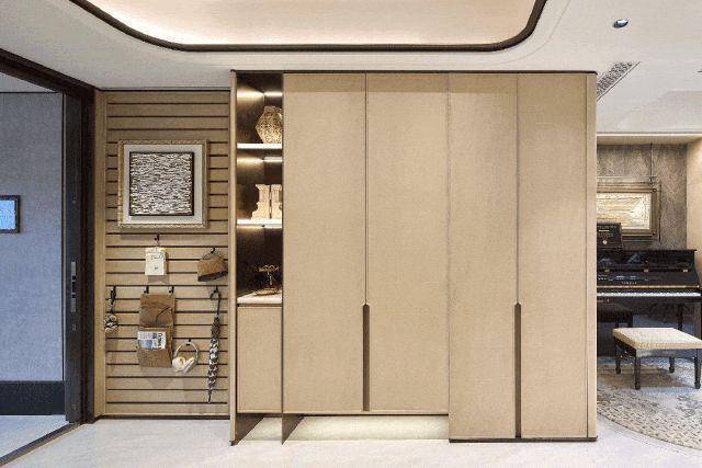 在保利天奕的背景墙岩板定制之上,保利珺园实现定制化的全面升级,打破“千房一面”的桎梏,构建三大定制体系,将定制化贯穿入户、玄关、客厅空间,兼顾个性化需求与整体美学统一,彰显高阶人群的专属品味