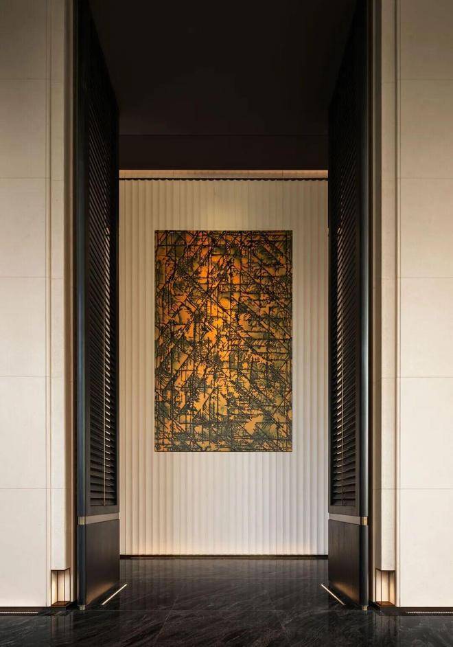 整个会所净高有7米,正常情况下两层楼的空间感,直接被奢侈的用作公区,海威还大手笔的将石材上墙,意大利白色的石材搭配金属凹槽、不锈钢线条、壁灯,低调又大气。地面采用碧谭金沙高级花岗岩,辅以屏风式设计的门洞,这不正是高净值人群心目中本该有的会所模样?