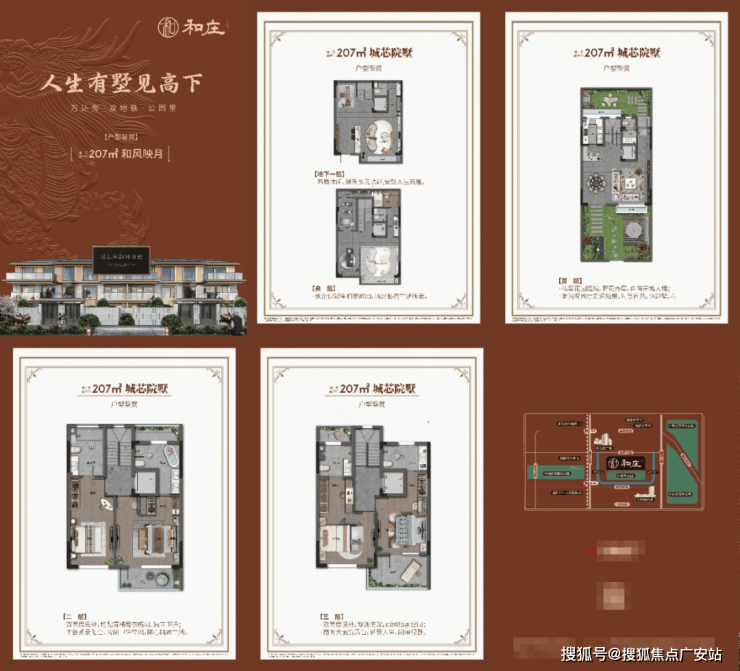 1.1的容积率。翠璟和庄是纯排屋社区,全盘只规划了202套排屋,非常纯粹。