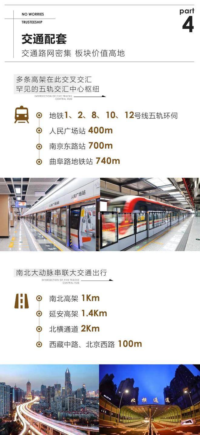 五轨交环绕(1/2/8/10/12号线),延安高架、南北高架快速通达