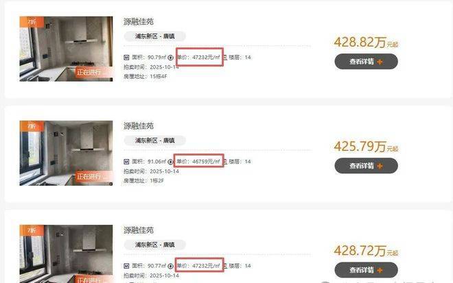 二手房挂牌价:2025年7月均价70233元/㎡,法拍房起拍价低至48400元/㎡(2025年10月开拍)。