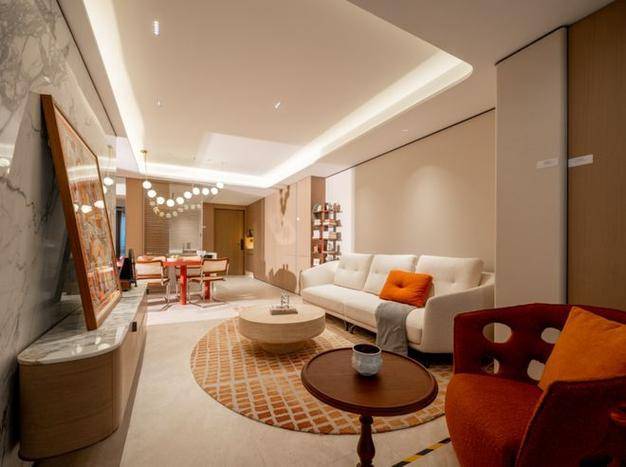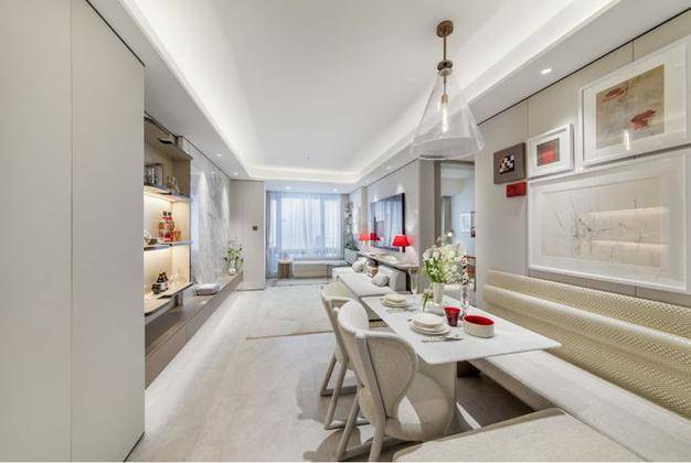 建面约110㎡的三房两厅两卫,非常适合年轻家庭上车,它的设计风格偏法式,符合年轻人审美。