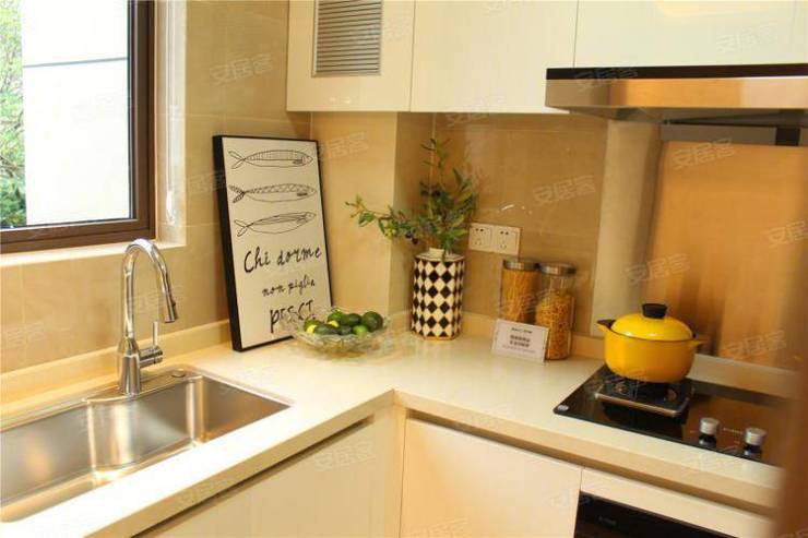 厨房超大柜体的收纳空间,包括调味拉篮、岛台双面收纳,将厨房空间直接扩容约80%,贴心的灶前龙头设计,开火时直接上方接水,非常灵活;