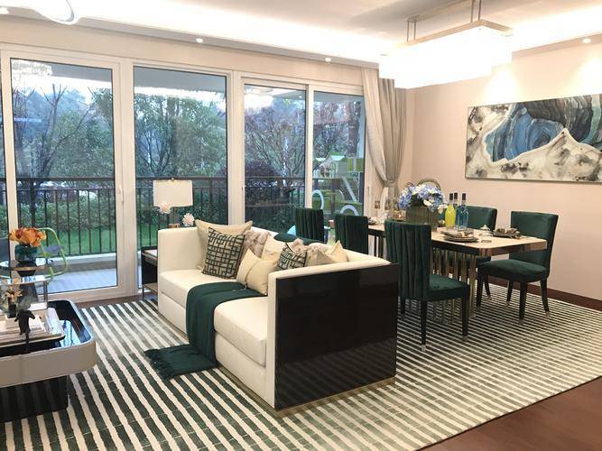 最后讲讲项目的建筑立面,它采用了爱马仕同款博斯普鲁斯绿,这种绿色在中国古文化里面名为黛青色,很好地承接了南翔这个板块的文化底蕴。
