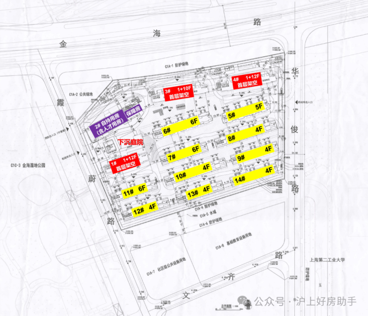【联发金海雲墅】项目位于浦东金桥东,拟建3幢11-14层小高层住宅,全部首层架空;10幢4-6层低密产品,以及持用房(含人才用房)&保障房。南侧临河的,均为4层叠墅类产品。