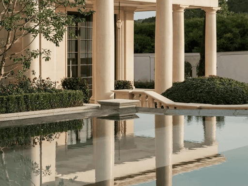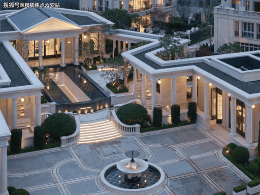 形制:经典法式廊柱、雕花、坡屋顶,户户前庭后院 + 下沉庭院。