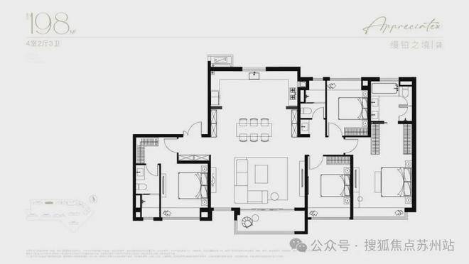 稀缺户型:198㎡大平层为嘉定主城稀缺产品,南向面宽达19米,配备中西双厨及主卧套房。