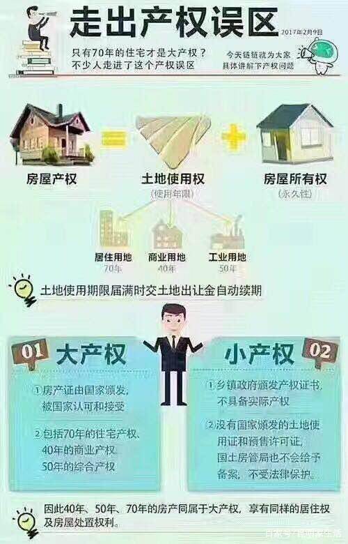 我们是社会主义国家,土地是国家的。根据项目的立项不同,租用国家土地的周期也不同,国家通过土地有期出让方式,授予用地人40年、50年、70年不等的使用权,只要证件齐全,都属于大产权。不管是40年、50年还是70年,都有到期的时候,土地使用年限到期后,都能续签土地。续签金额根据国家现行的相关规定,按照当时楼面毛地指导价格,依一定比例缴费。而土地上的房屋所有权属于个人产权,是私有财产权的一种,房屋的所有权是永久的,没有使用期限限制,只要房子还能住,就一直能住下去。