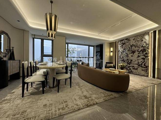 当传统百平户型还在为三开间挣扎,南山璞缦建面约198㎡以约19米四开间朝南面宽+LDKB一体化纵深实现降维打击。主卧折角飘窗延展空中墅级视野,HWCD团队更将海派摩登融入奢装细节,让室内每一寸空间成为艺术展场。