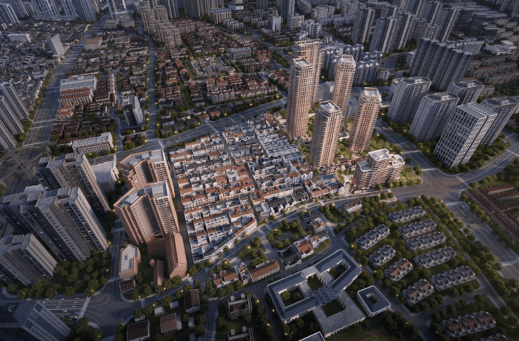 根据规划,项目总建筑面积约23万方,由6栋14-37层的高层住宅、部分改建保留的联排别墅、合院别墅以及部分配套用房组成。